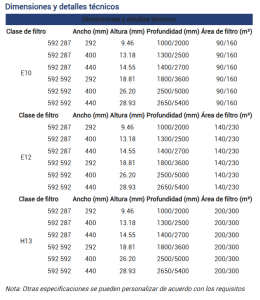 • Alta eficiencia de filtración con baja pérdida de carga